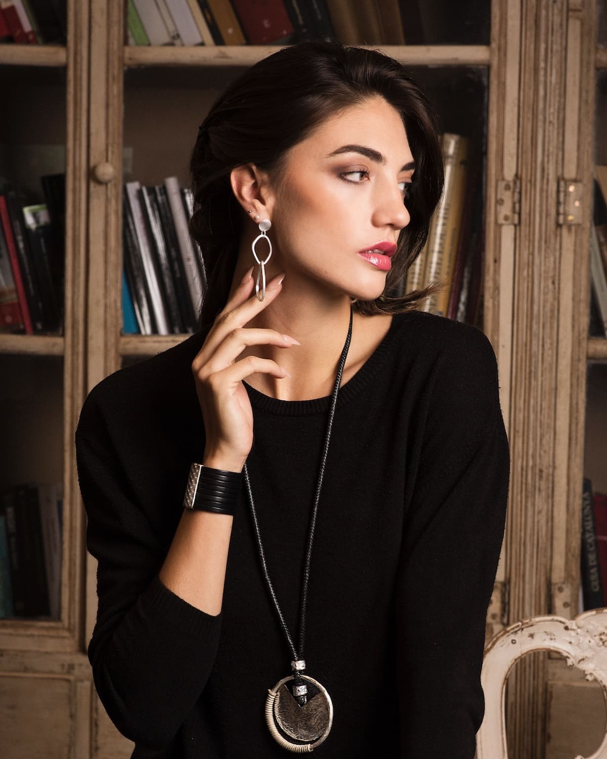 Las joyas Egass están elaboradas con materiales de alta calidad, incluyendo metales chapados en oro y plata, piedras naturales, abalorios, resina, cuero y zamak.