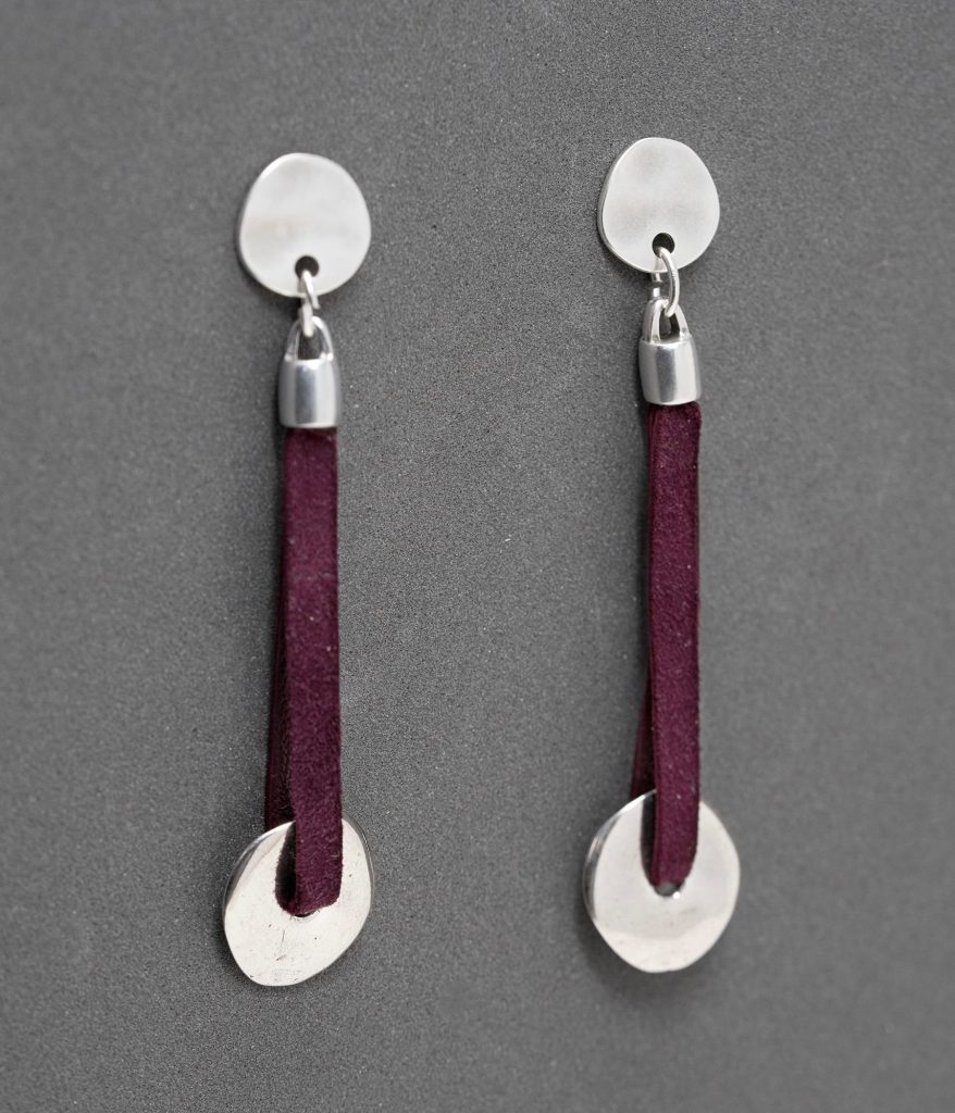 Arracades de zamak i mineral en forma de llàgrima. Âgata color verd o rosa o ametista color violeta.