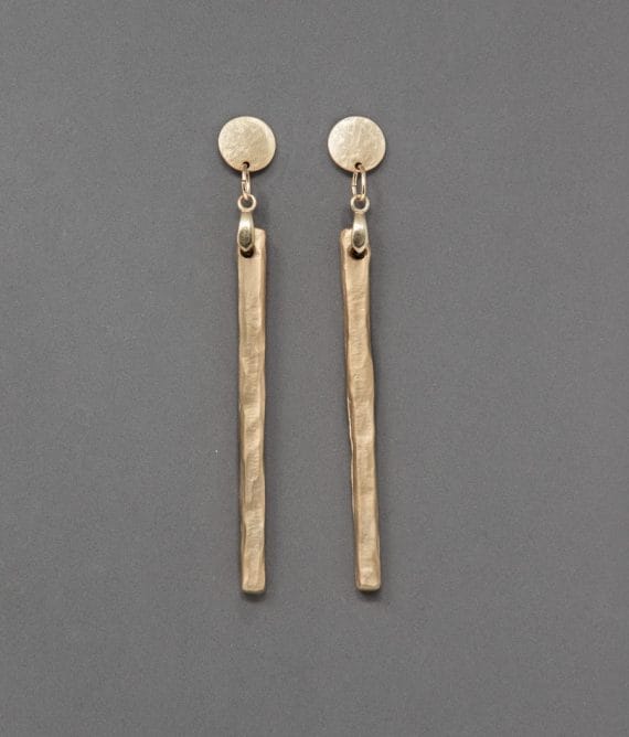 Arracades en forma de bastó prim  de zamak banyat en or o plata segons model. Hi ha l’opció de tancament de clip, per a orella sense perforació, o l’opció estàndard per a orella perforada.