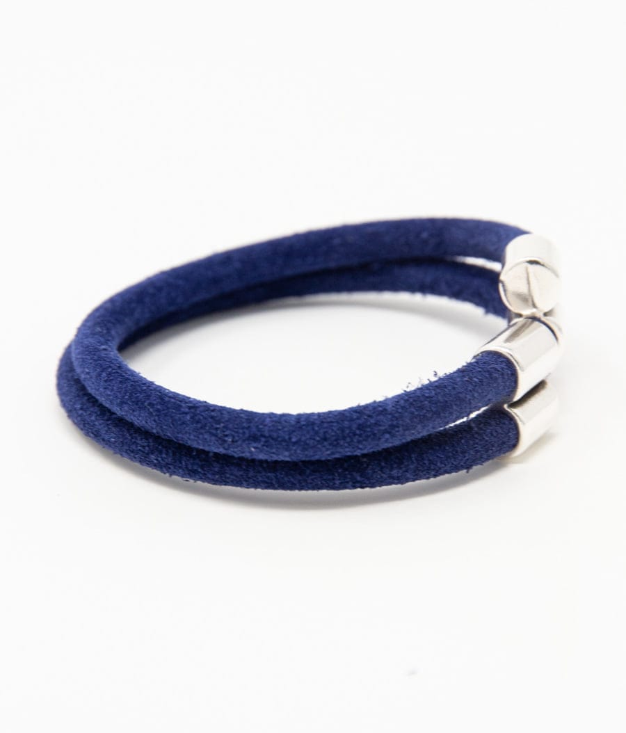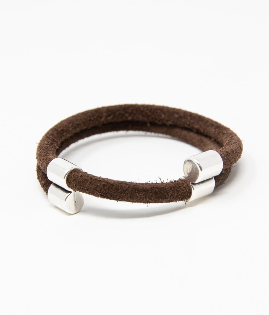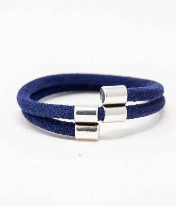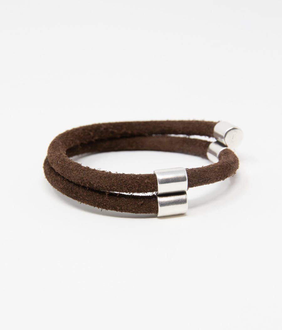 Double loop tubular suede bracelet. Silver plated magnetic clasp. Handmade.