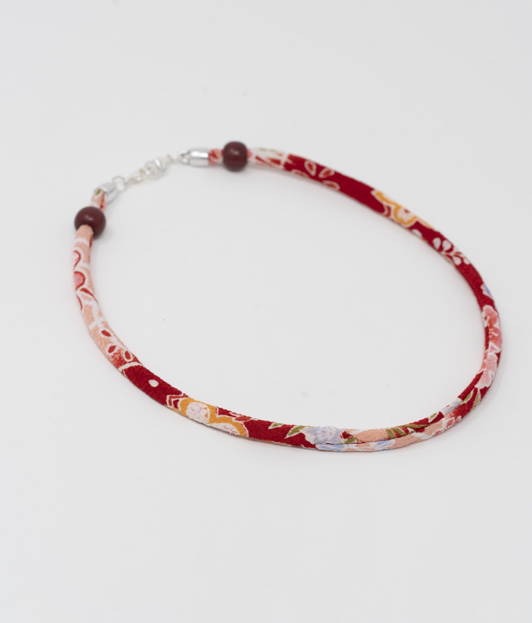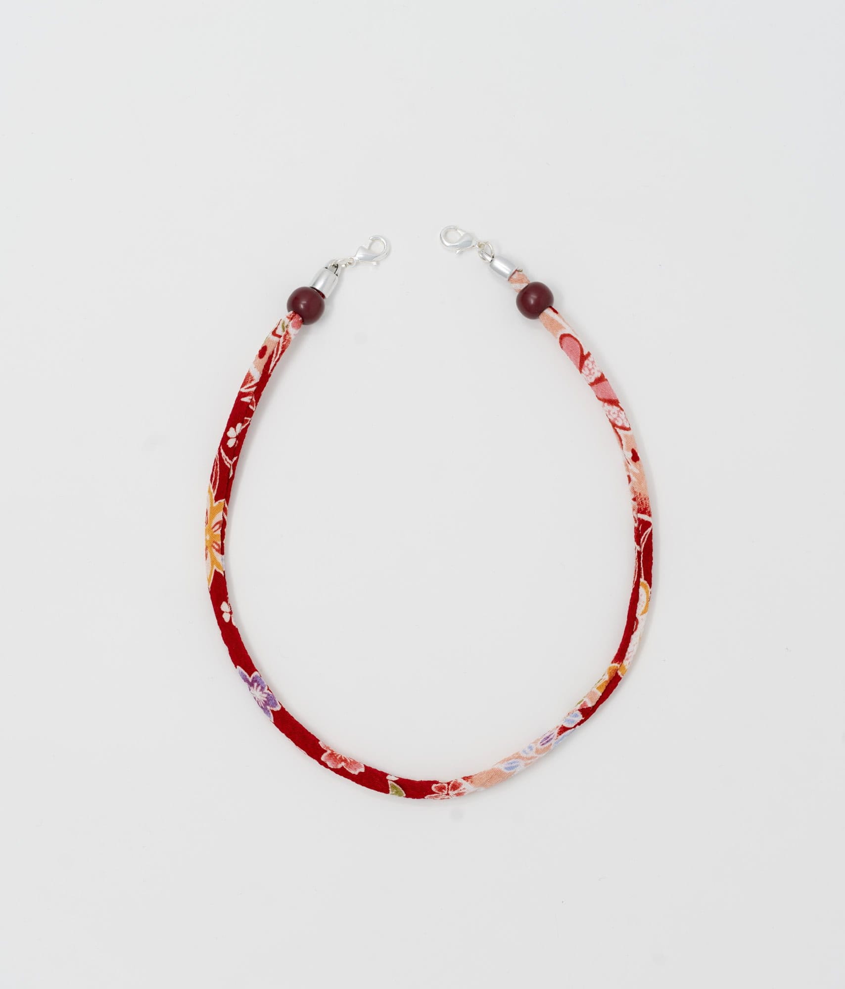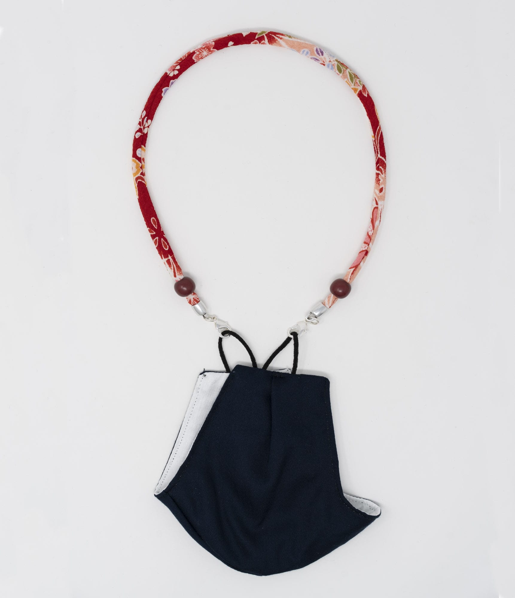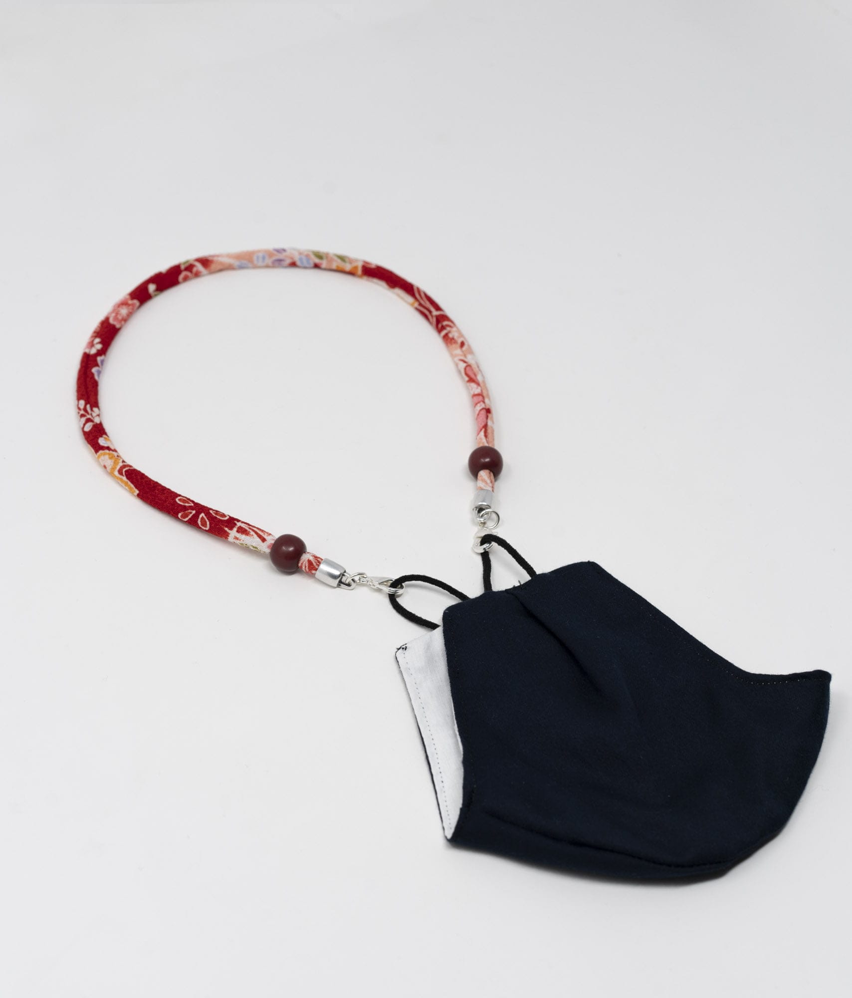 Mask holder earring effect, made of silk with floral motifs reminiscent of the delicate Japanese style finished in a bead . Silver plated metal clasp to attach it to the mask. Handmade.