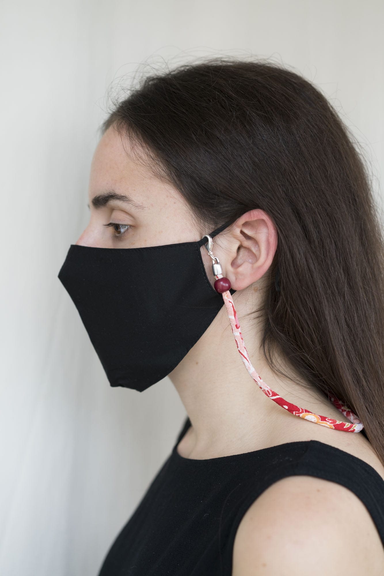 The mask holder is a very practical and flattering complement to the earrings. We can also transform it into a necklace or in some cases into a bracelet.