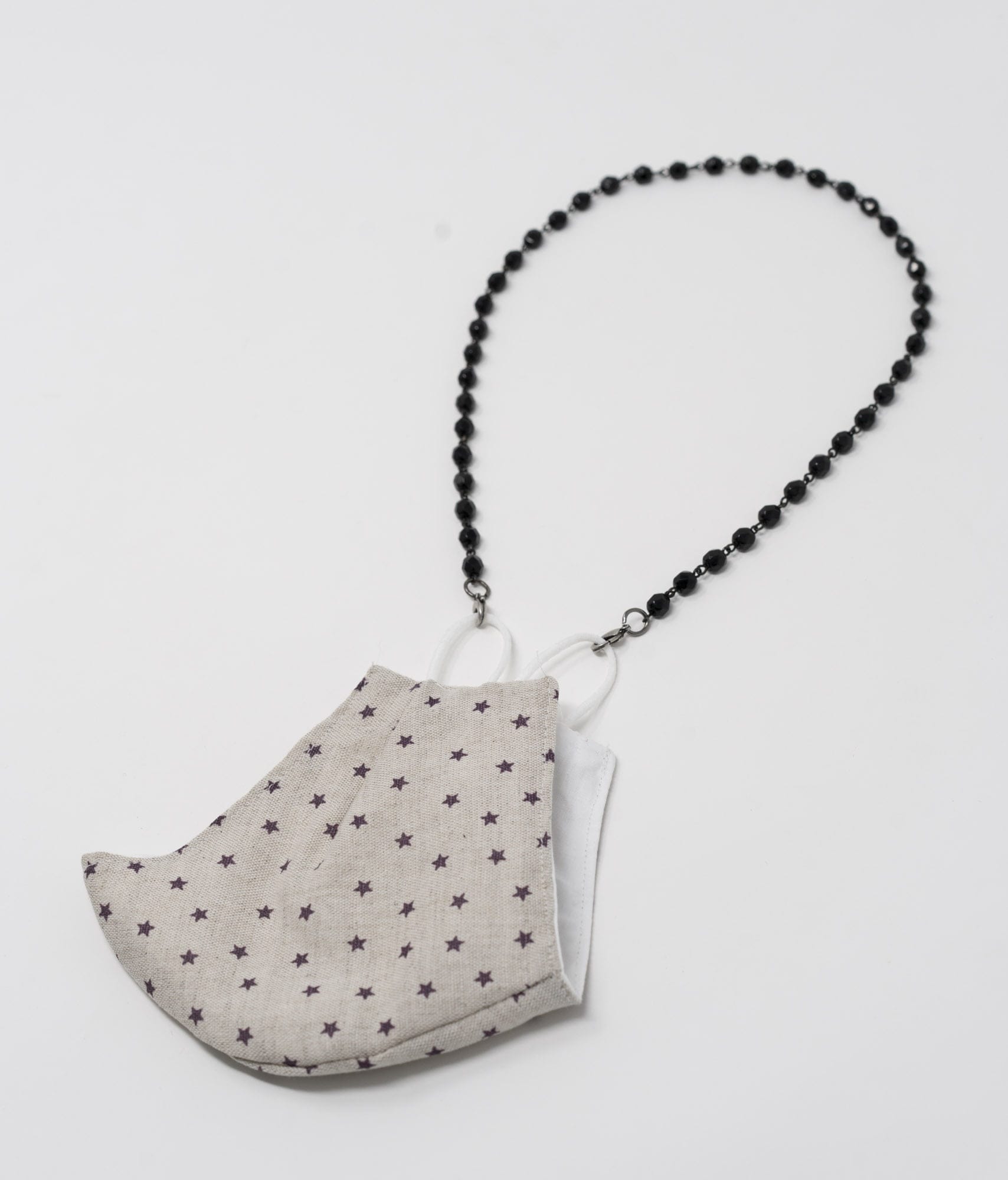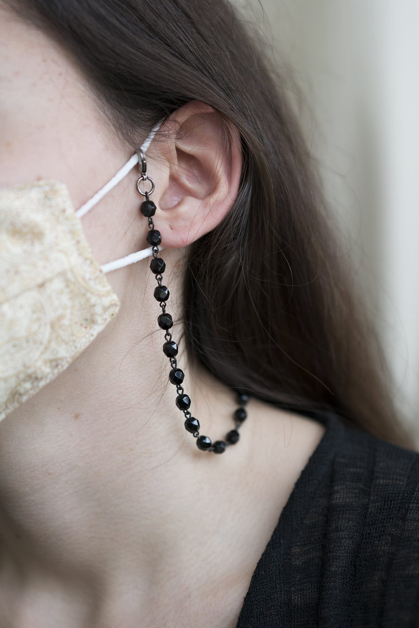 The mask holder is a very practical and flattering complement to the earrings. We can also transform it into a necklace or in some cases into a bracelet.