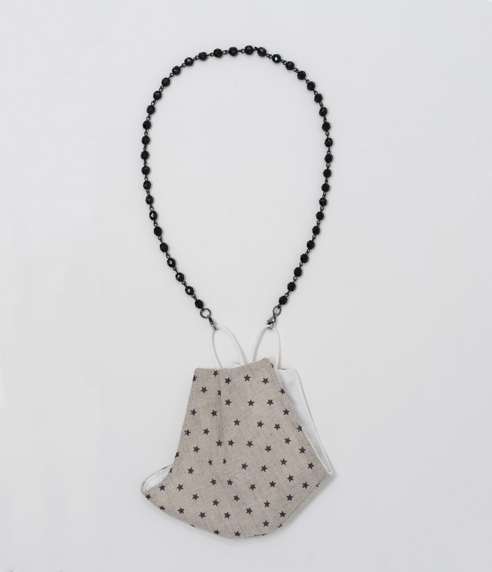 Mask holder earring effect,made with small black spheres. Silver plated clasp to attach it to the mask. Handmade