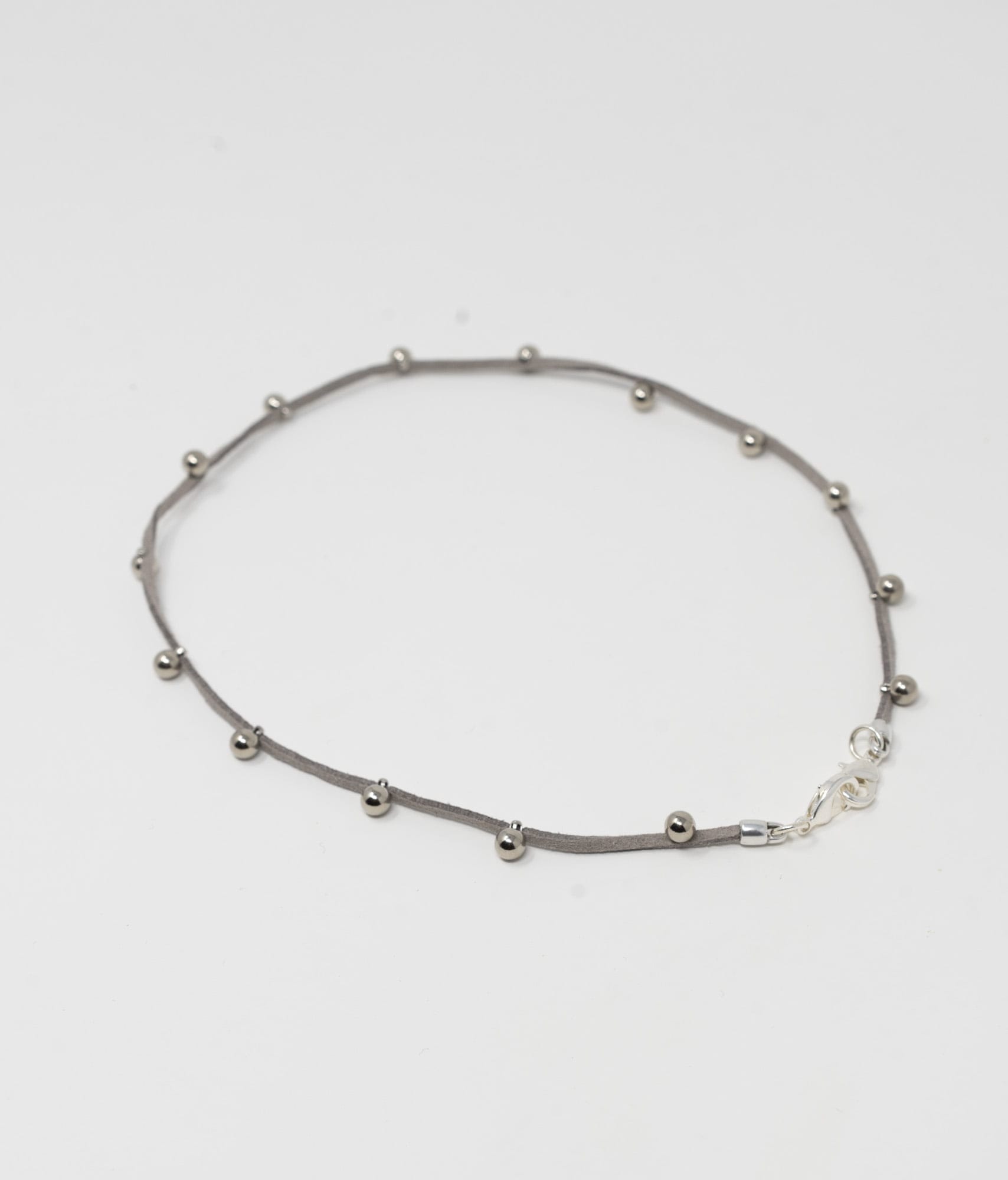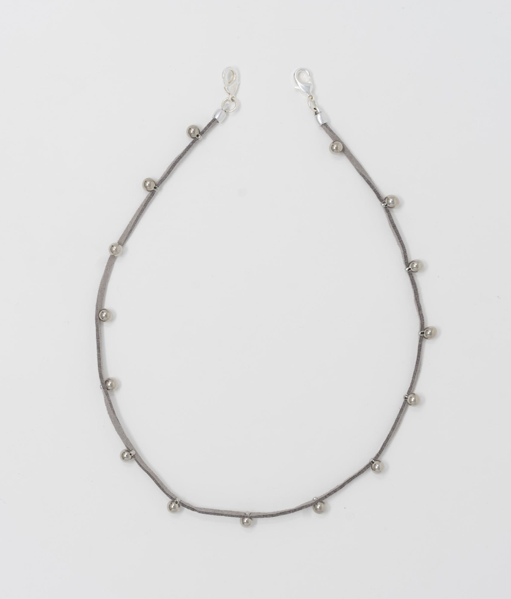 Mask holder earring effect,made of suede with small metal spheres embedded. Silver plated clasp to attach it to the mask. Handmade