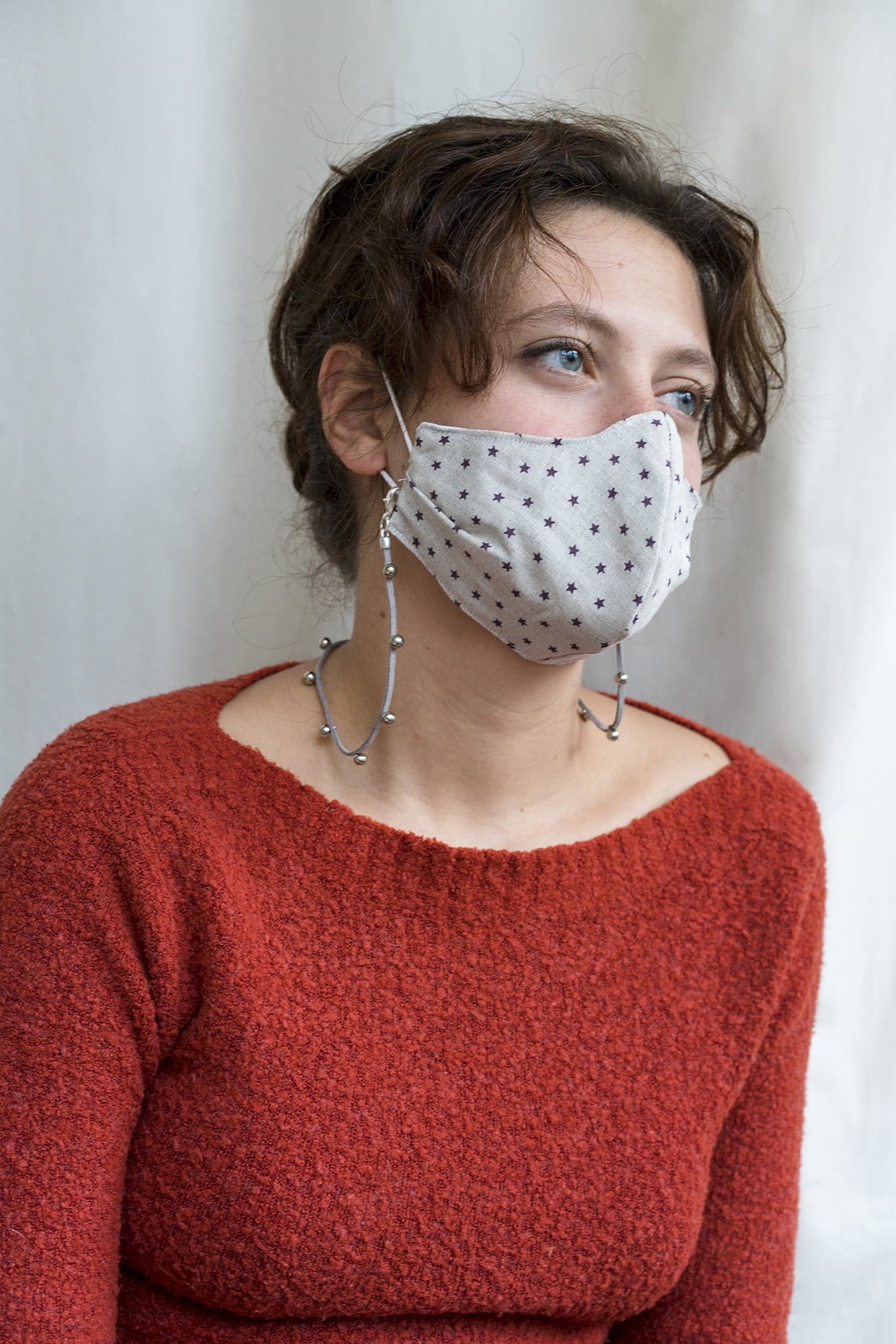 The mask holder is a very practical and flattering complement to the earrings. We can also transform it into a necklace or in some cases into a bracelet.