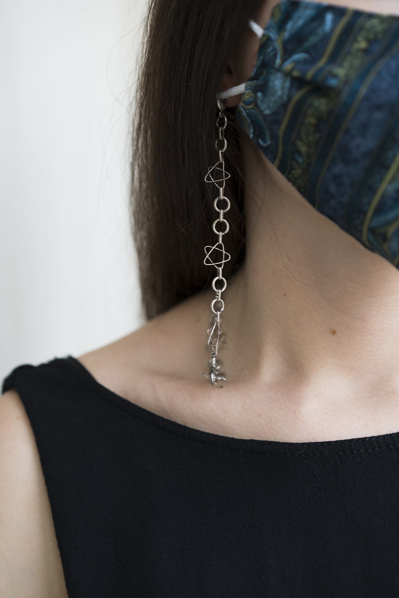 Mask holder earring effect, in chain with different shapes. Silver plated metal clasp to attach it to the mask. Handmade.