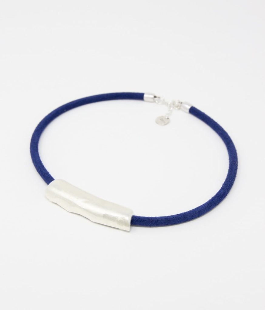 Its clean design enhances the elongated shape of the cut-out pendant, creating a light and refined piece. The gold or silver plating adds an elegant shine that pairs easily with styles ranging from casual to formal. Handmade, this choker embodies the essence of a unique and timeless piece of jewelry.