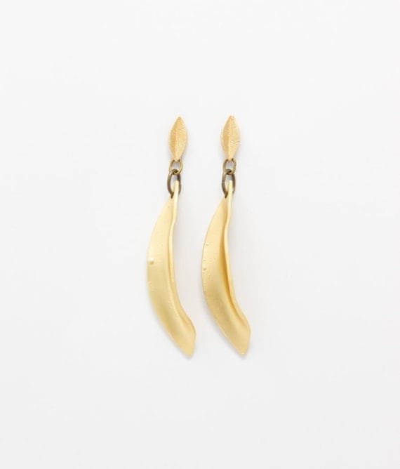 Pendientes largos dorados con pieza en forma de hoja de 5,5cm.