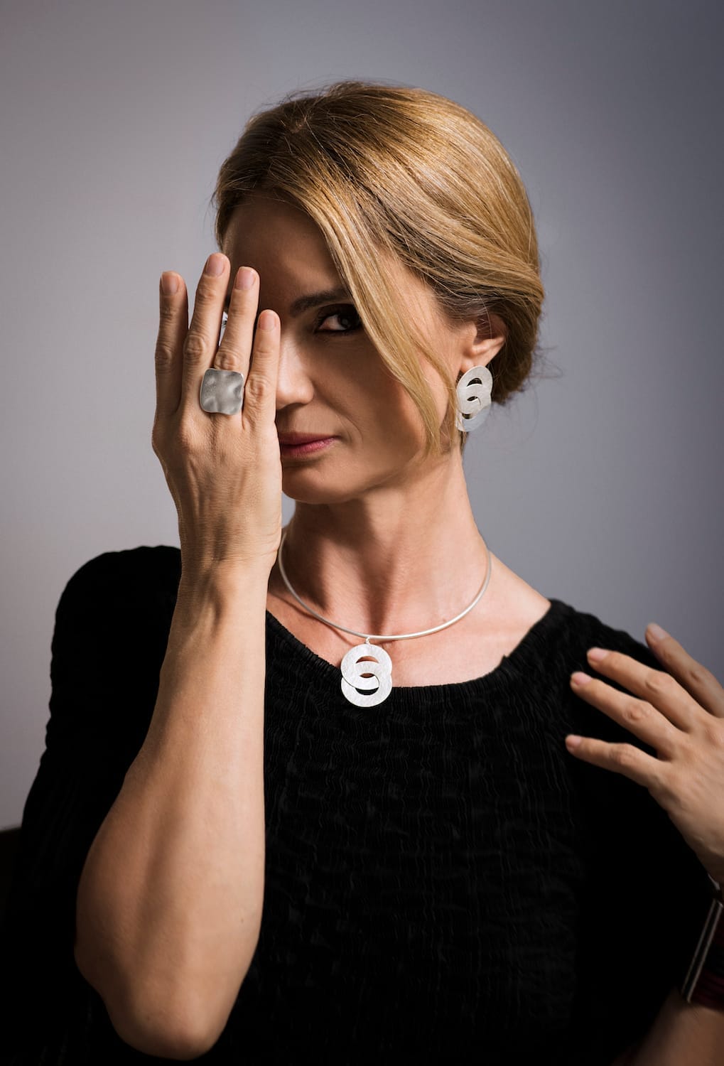 Estos pendientes de diseño contemporáneo presentan dos círculos planos entrelazados, elaborados con un delicado acabado martelé que aporta textura, un brillo sutil y un carácter artesanal único a cada pieza. Perfectos para quienes buscan un accesorio minimalista pero con personalidad, son ideales para combinar tanto con looks casuales como con estilos más elegantes.