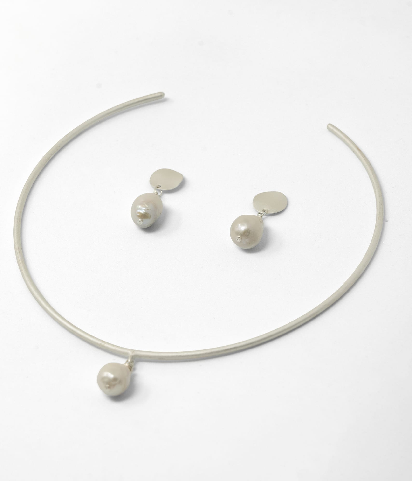 La pureza de las perlas de río se une a un diseño sencillo y contemporáneo en este conjunto único. La gargantilla realza el cuello con un aire elegante y minimalista, mientras que los pendientes completan el look con un toque delicado y sofisticado. Un conjunto versátil que combina naturalidad y estilo en perfecta armonía.