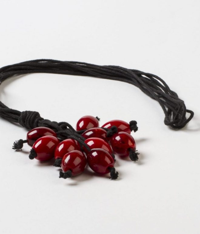 Este collar tiene la peculiaridad de poder llevarse también sin el anillo central. El modelo quedará con las cinco tiras de algodón. El cierre puede colocarse tanto delante como detrás. Así, el mismo collar puede tener tres posibilidades diferentes.