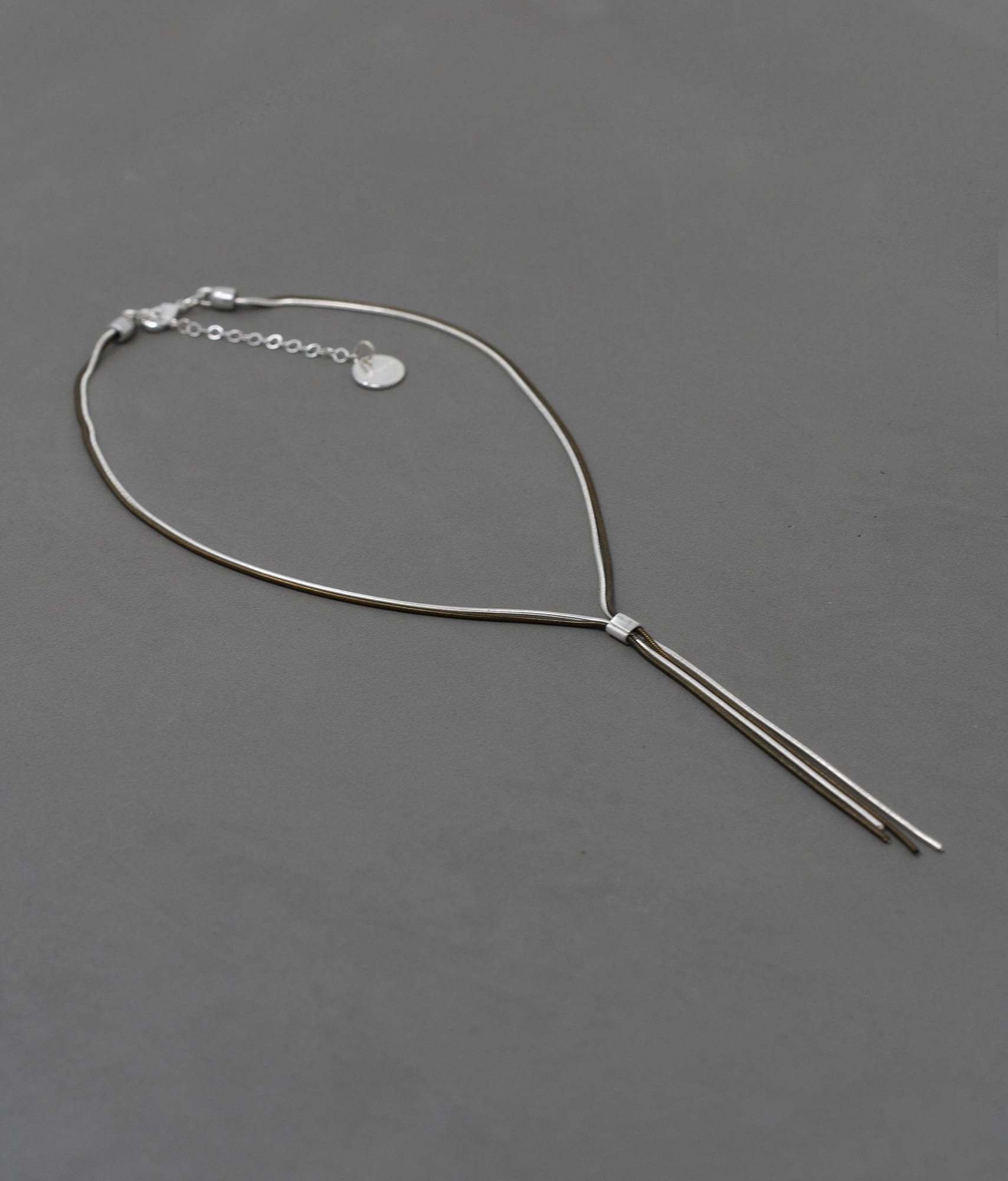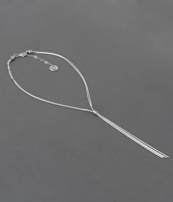 Collar corto de doble cadena chapada en plata. Muy femenino y favorecedor. Disponible en color plata o bicolor, oro viejo y plata.